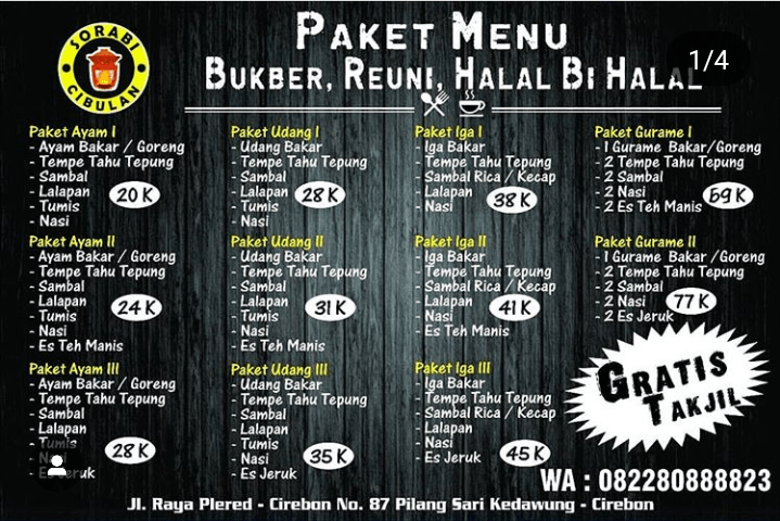 Sorabi cibulan menyediakan berbagai paket untuk bukber, reuni, dan halal bihalal.